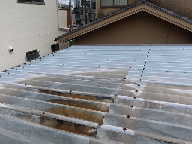 ムラなく均一な塗装が難しい折板屋根は、サーモバリアスカイ工法が好適です。
